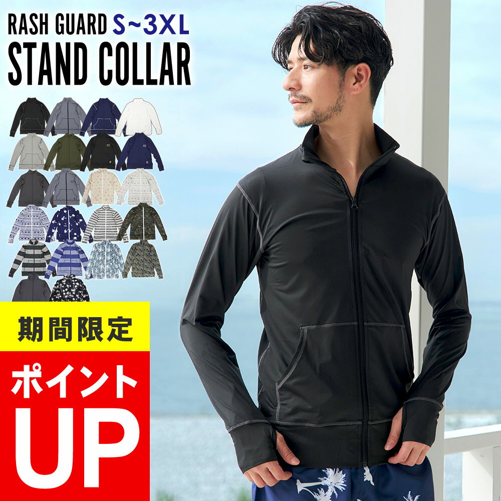 【ポイントUP】ラッシュガード メンズ 長袖 スタンドカラー UV98%カット S M L XL XXL 3XL 大きいサイズ UPF50+ 紫外線対策 水陸両用 ロングスリーブ